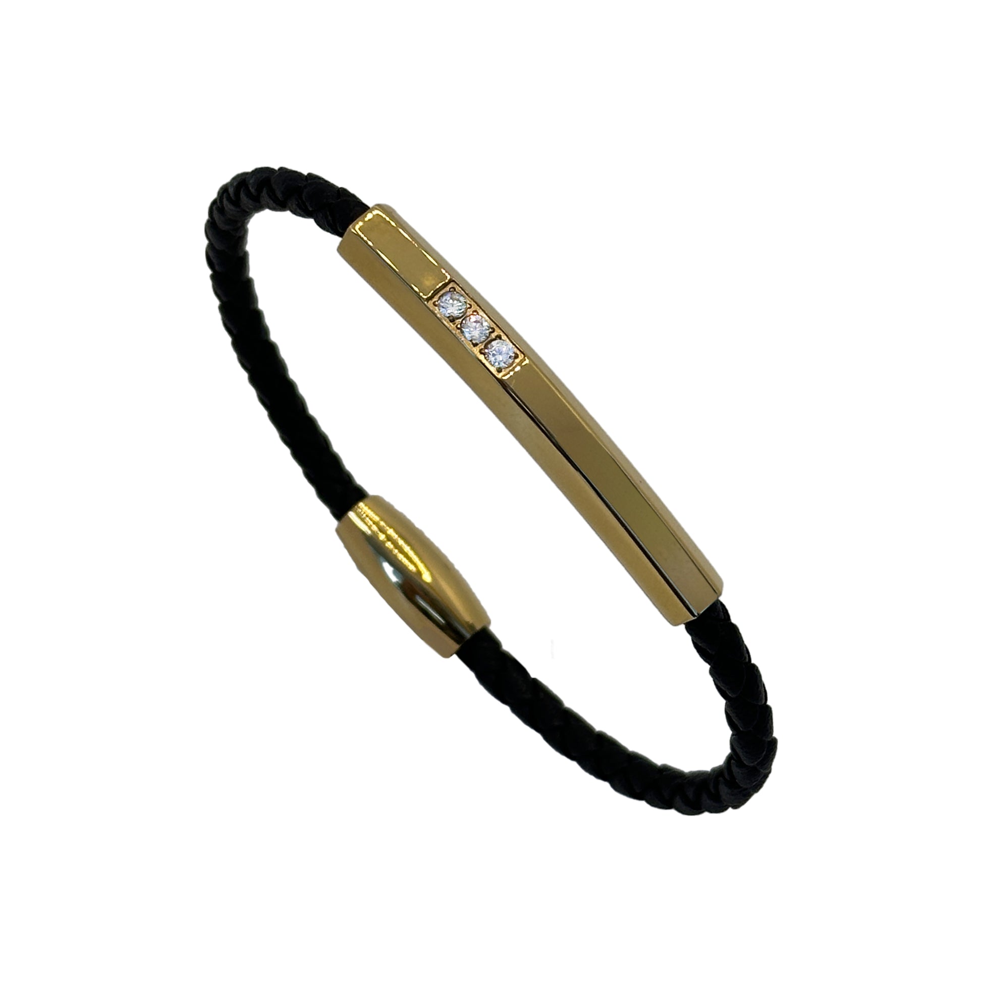 Eye-Catching Gold Bar and Diamond Leather Bracelet for Men